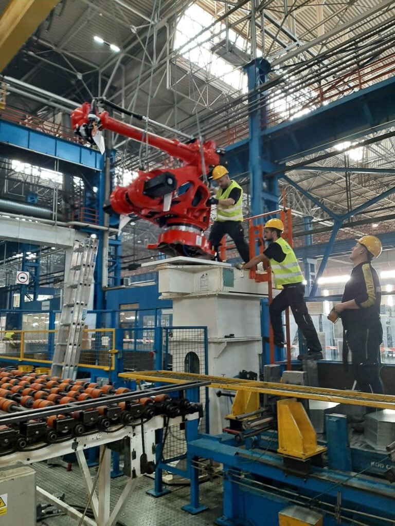 Projekt zakładał wymianę 18-sto letnich, mocno wyeksploatowanych robotów COMAU, z których notabene Klient był bardzo zadowolony, na nowe, również tego producenta. Dodatkowo naszym zadaniem było wykonanie projektu, budowa, montaż i uruchomienie nowego zasilania, sterowania i wizualizacji procesu całej linii pras, opartego na komunikacji profinet i systemach modułów bezpieczeństwa frofiseafe.